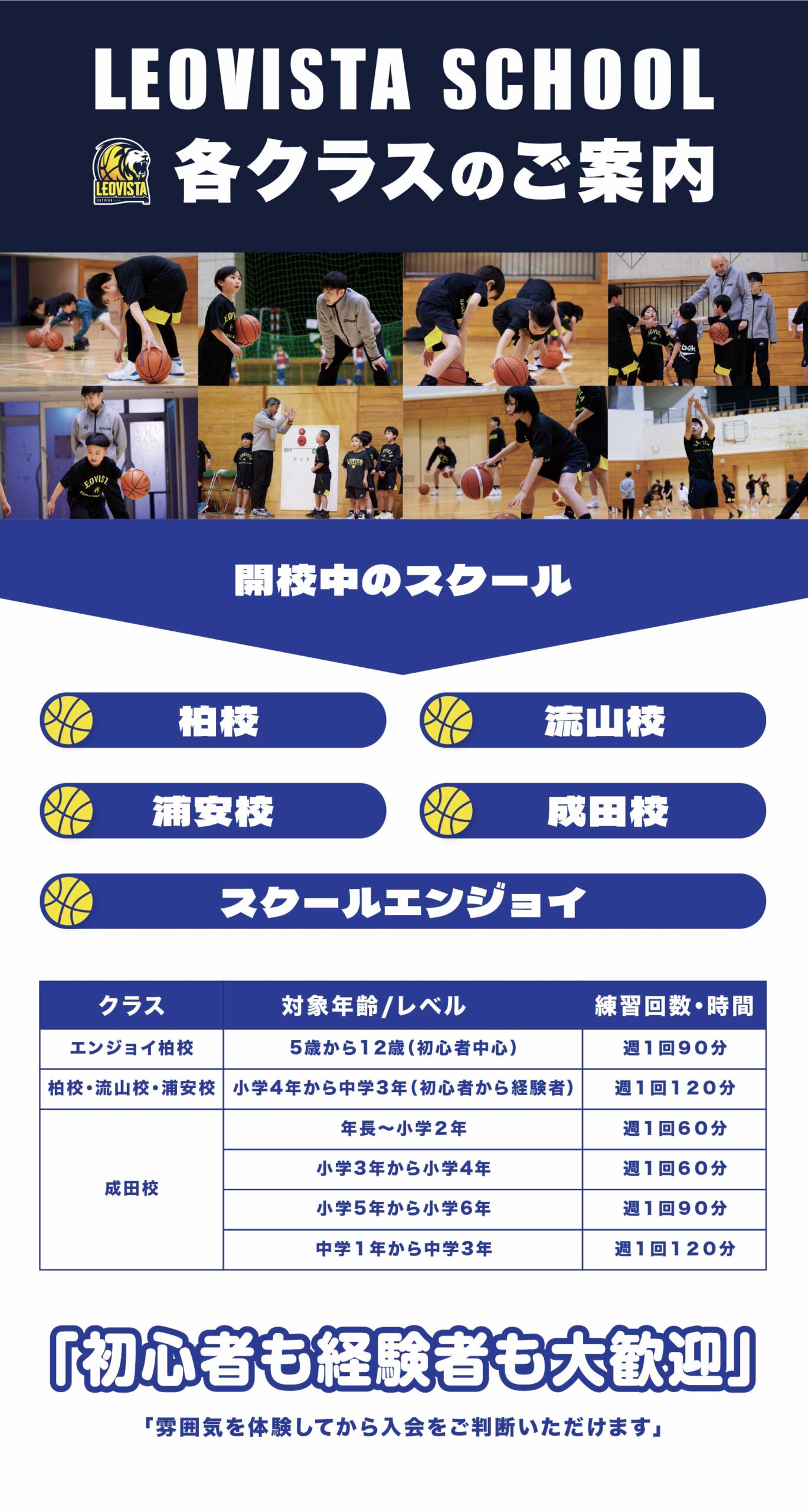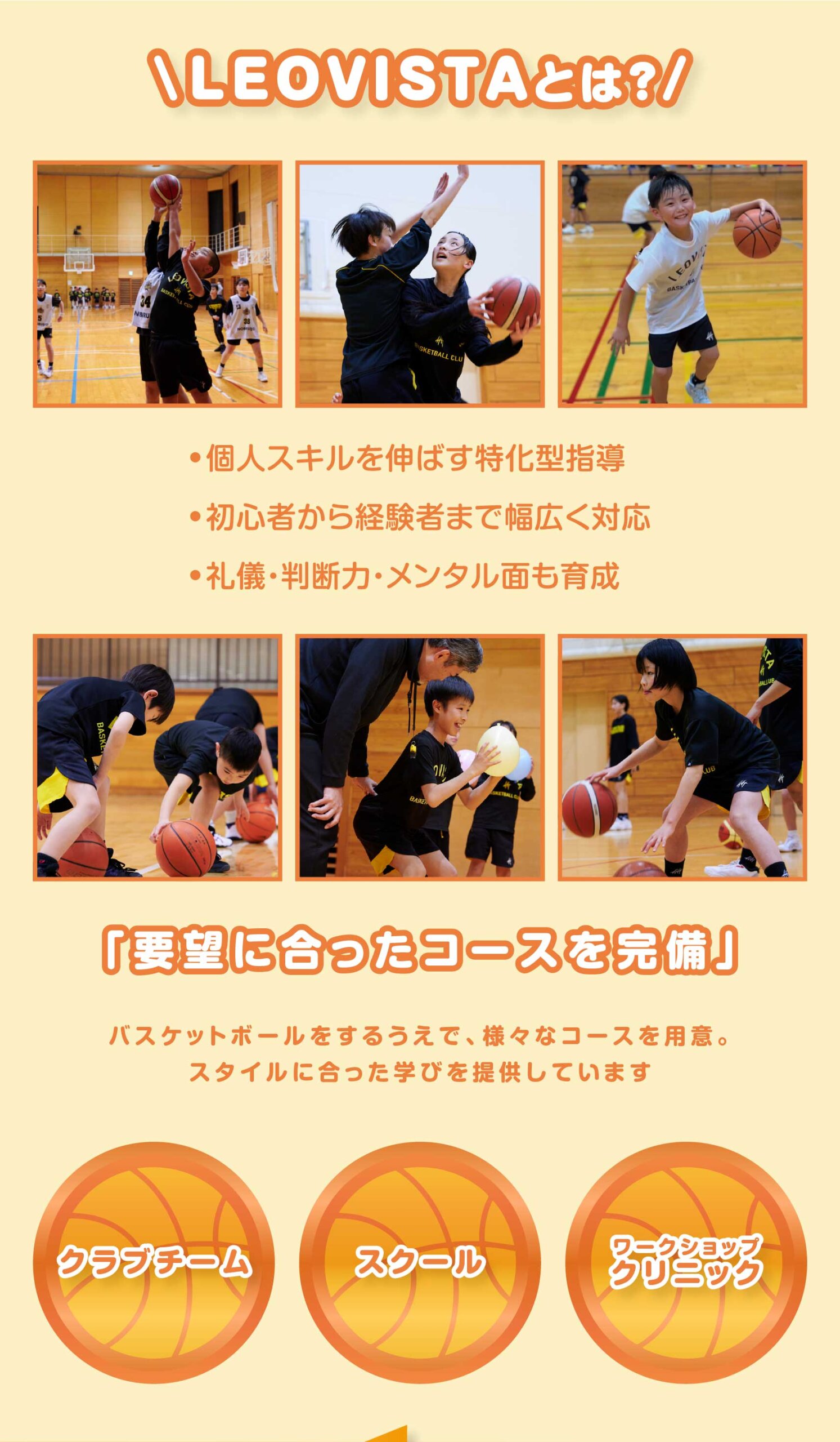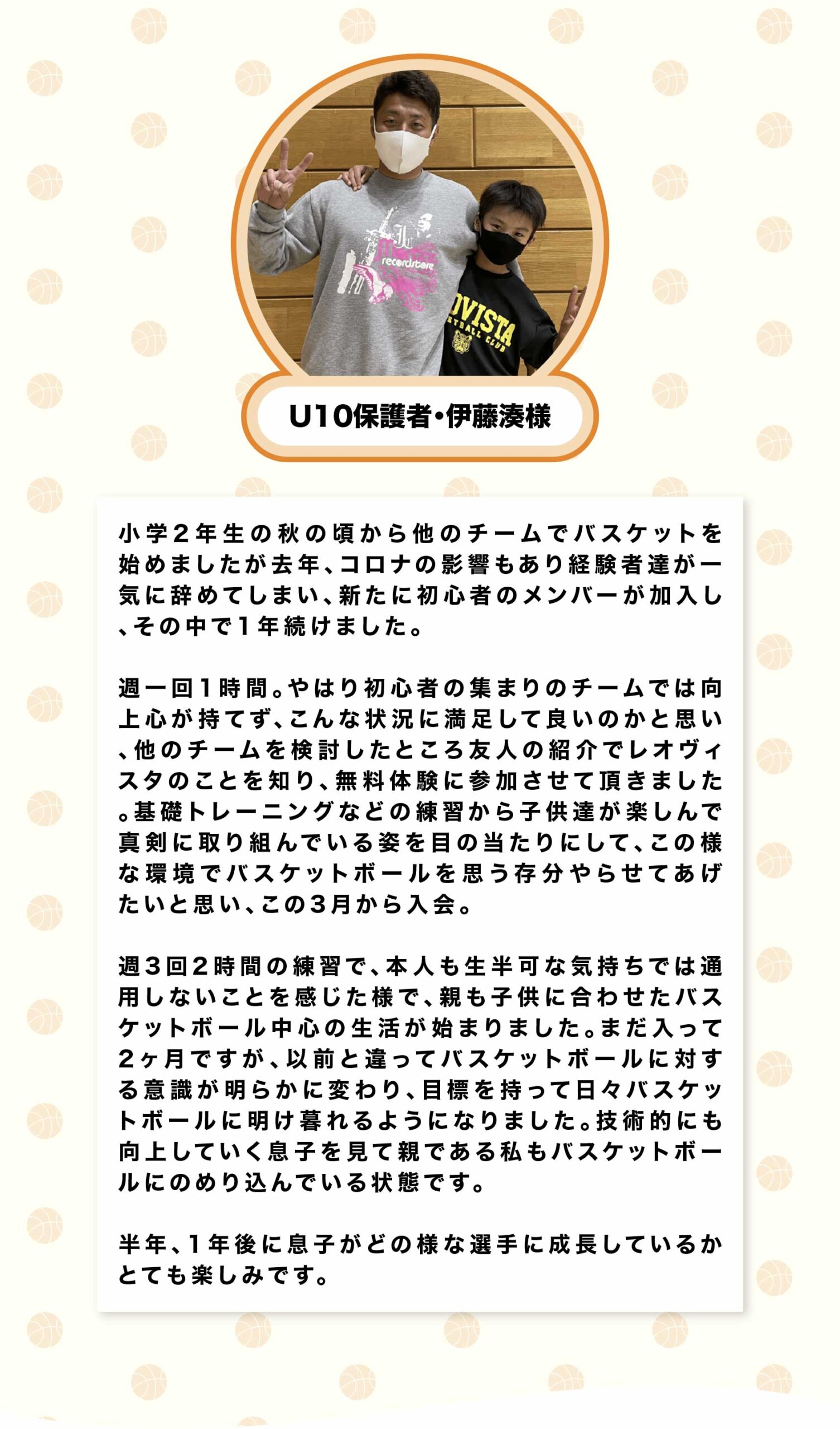 基本的には9歳~10歳までを対象としておりますが、11際・12歳でもバスケットボール未経験の場合につきまして半年間U10で練習することを可としております。