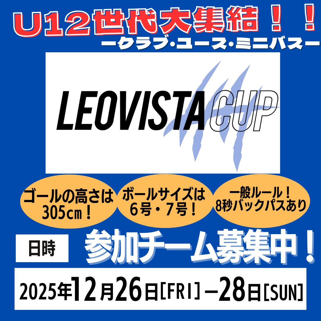 【 LEOVISTACUP U12 2025開催のお知らせ及び参加チーム募集のお知らせ】